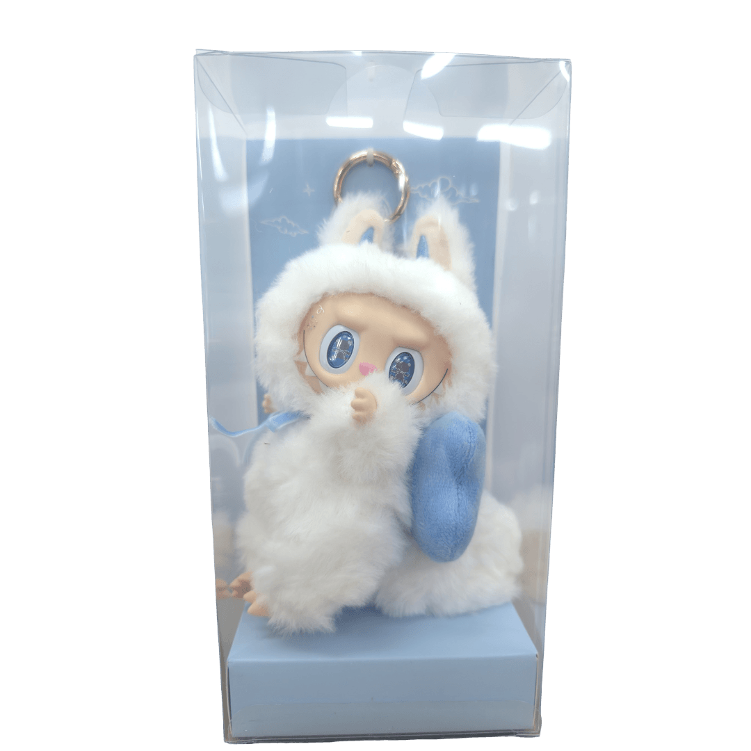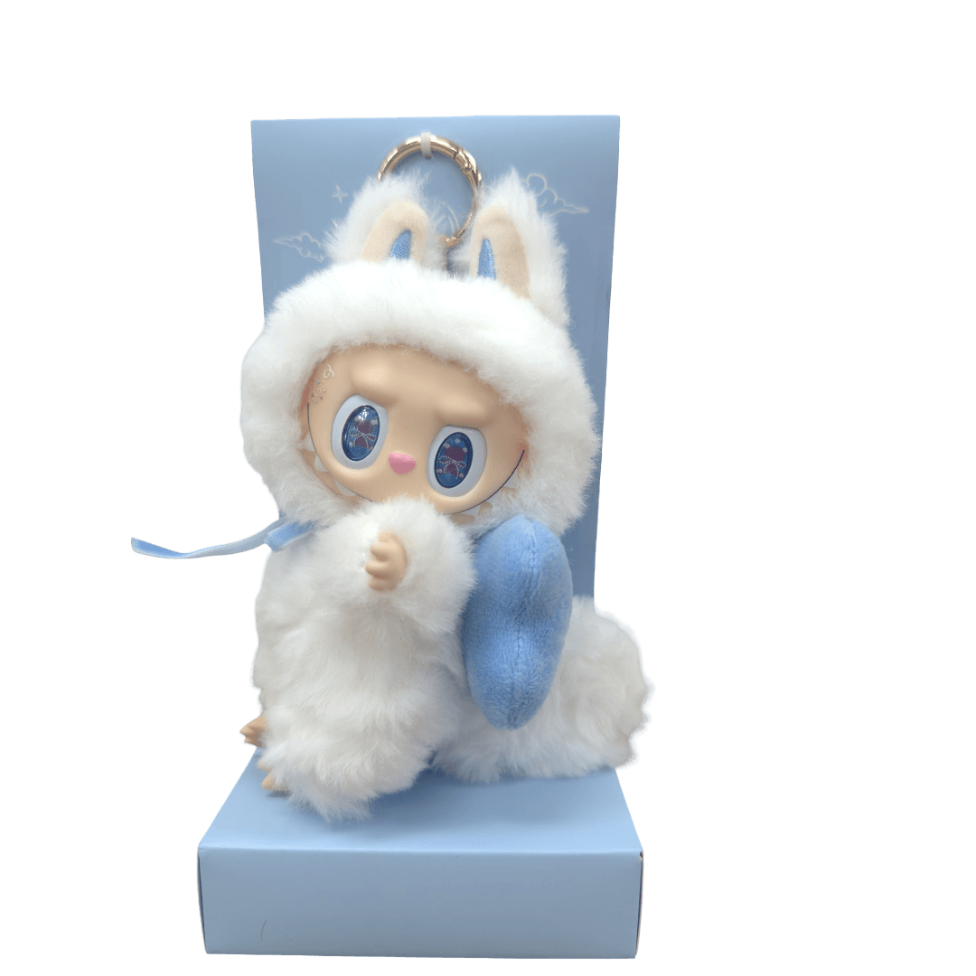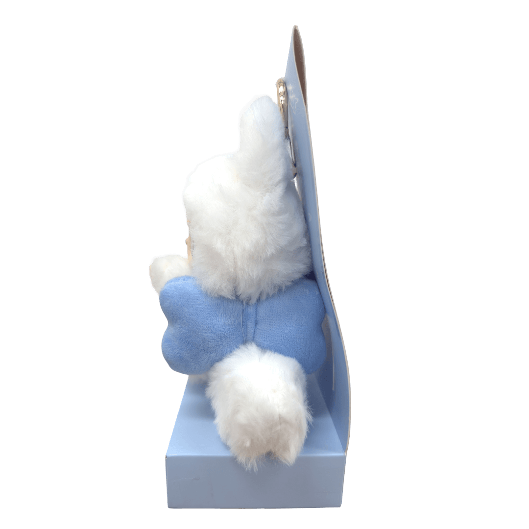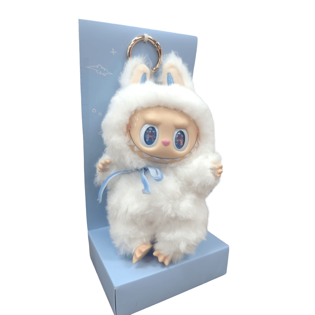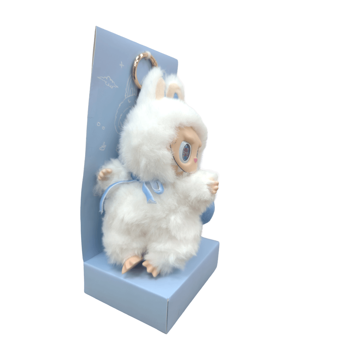 Blue Ribbon White Fluffy Plush Doll | 17CM Vinyl Face Figure