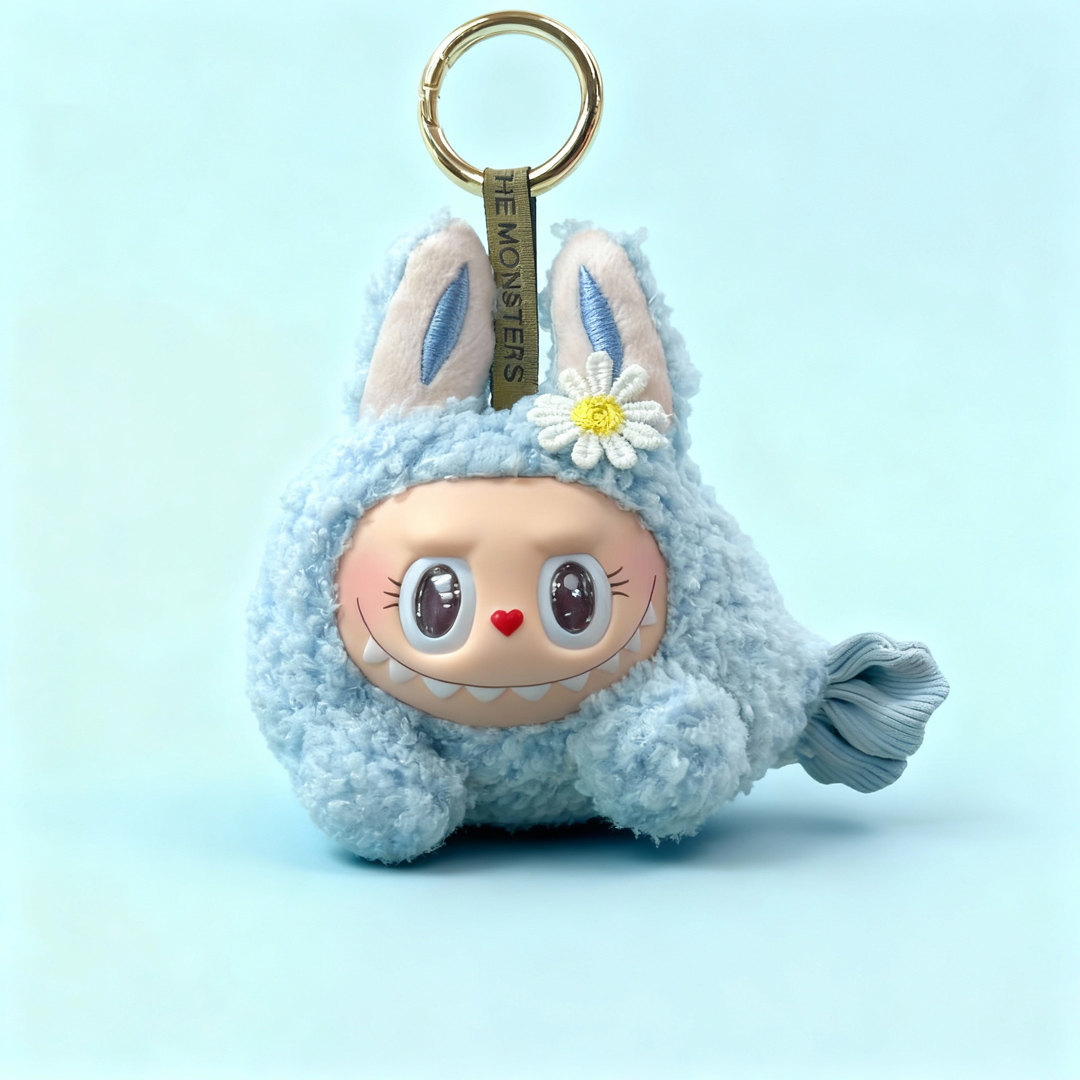 Roll the dice! Snag a mystery Fluffy Shrimp Monster Keychain (15CM) in either Berry Pink or Sky Blue! This adorable keychain features soft, curly plush, a cute vinyl face, and a charming little daisy accent. Which color will you get?
